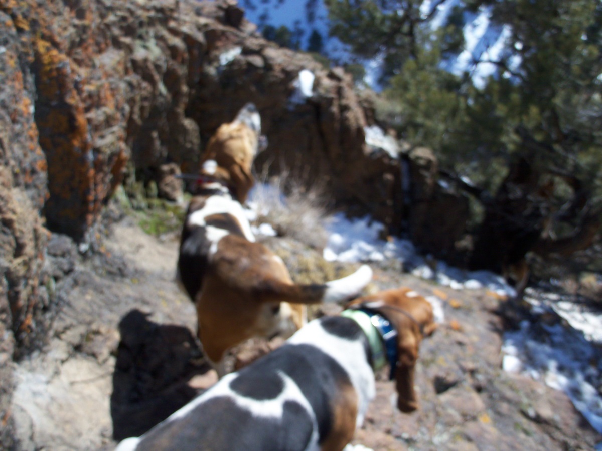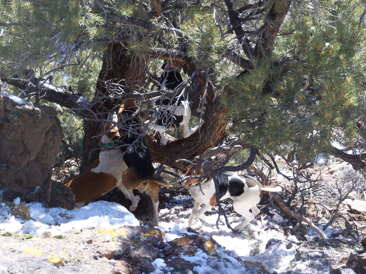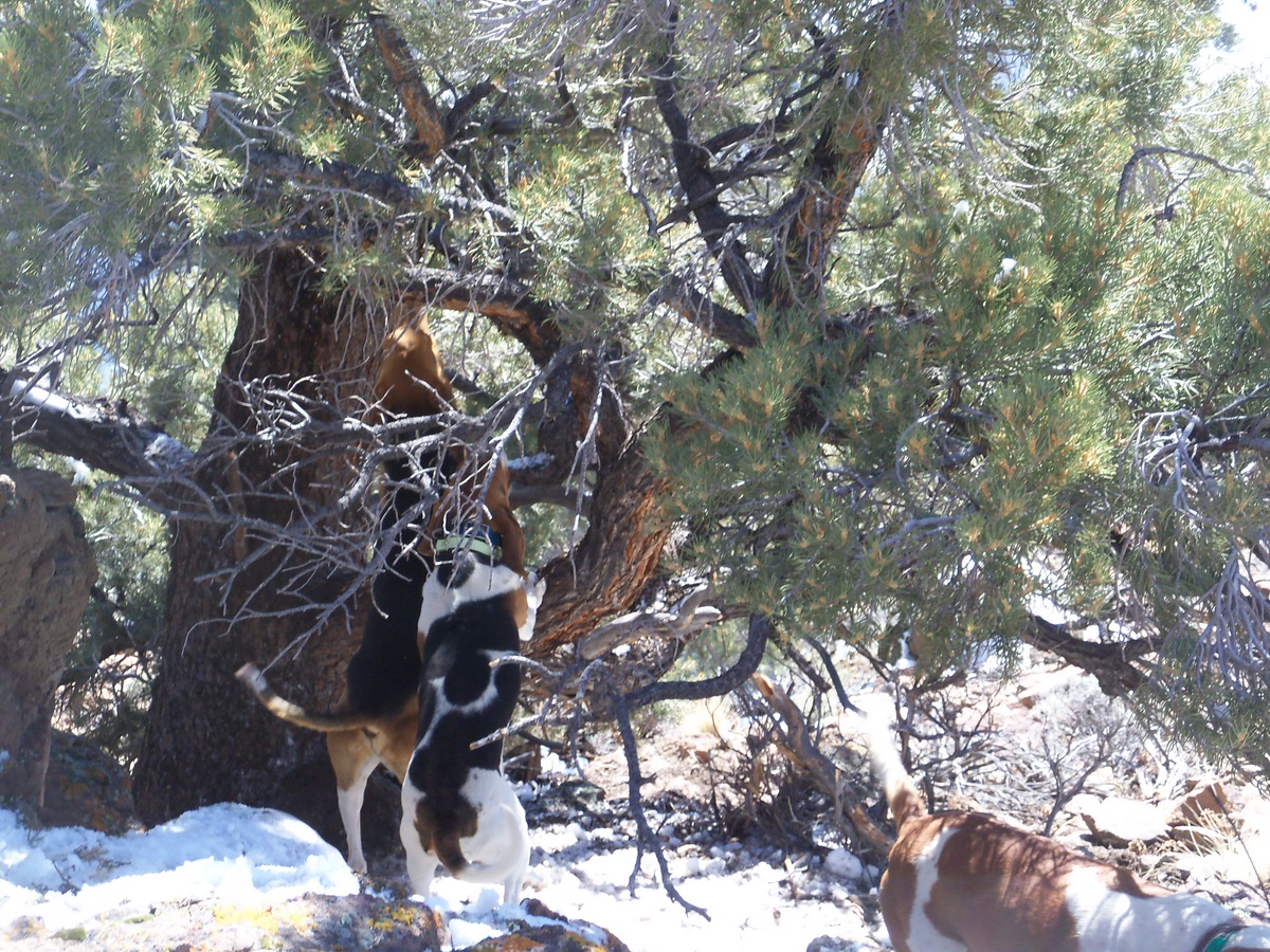 Hey mister don't forget to take at least 1 good pic. of the old man at each tree because you never know when it will be his last. Dogs look like they are doing a GREAT job. If you figure out how to keep them from climbing trees please post it so we will all have better pics. and less vet bills.