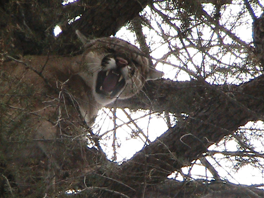 I caught a nice tom today in very poor conditions. We havent had any good snow in a long time so I hiked into an area that has a good cat population hoping and praying that we might find one. The dogs did awsome on almost entirely dry ground. There is still some snow on the north slopes but burned off for the most part. I took some pictures and left him to tree another day.