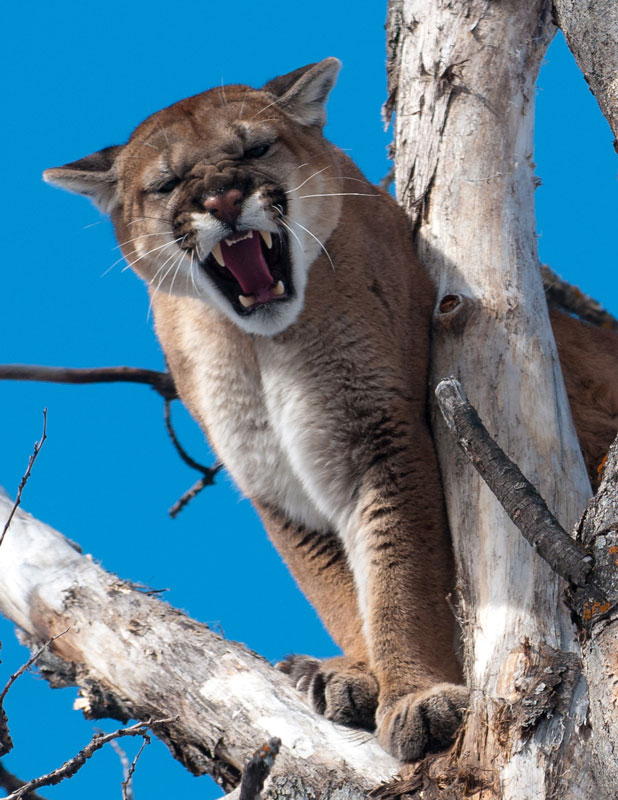 She treed about 50 feet up in a dead aspen after giving the hounds a tough time back tracking and jumping from where we had her twice.