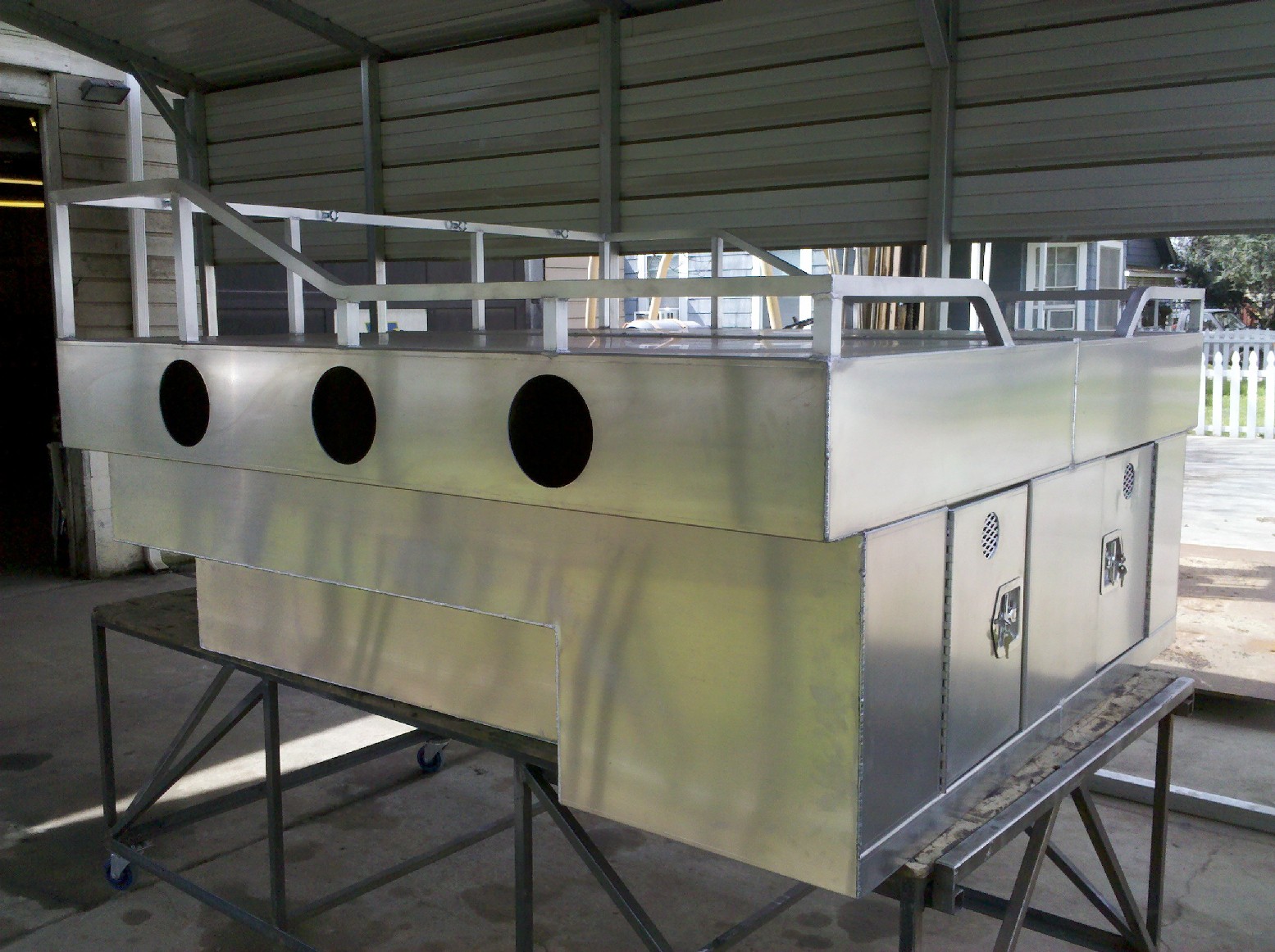 Aluminum dog box for full size truck.12 gage aluminum with center divider.Top deck is 6' x 6' $2,950.00 Contact Branden @ 209-874-3809 posting this ad for a friend sorry wrong area!!!!!!!!!