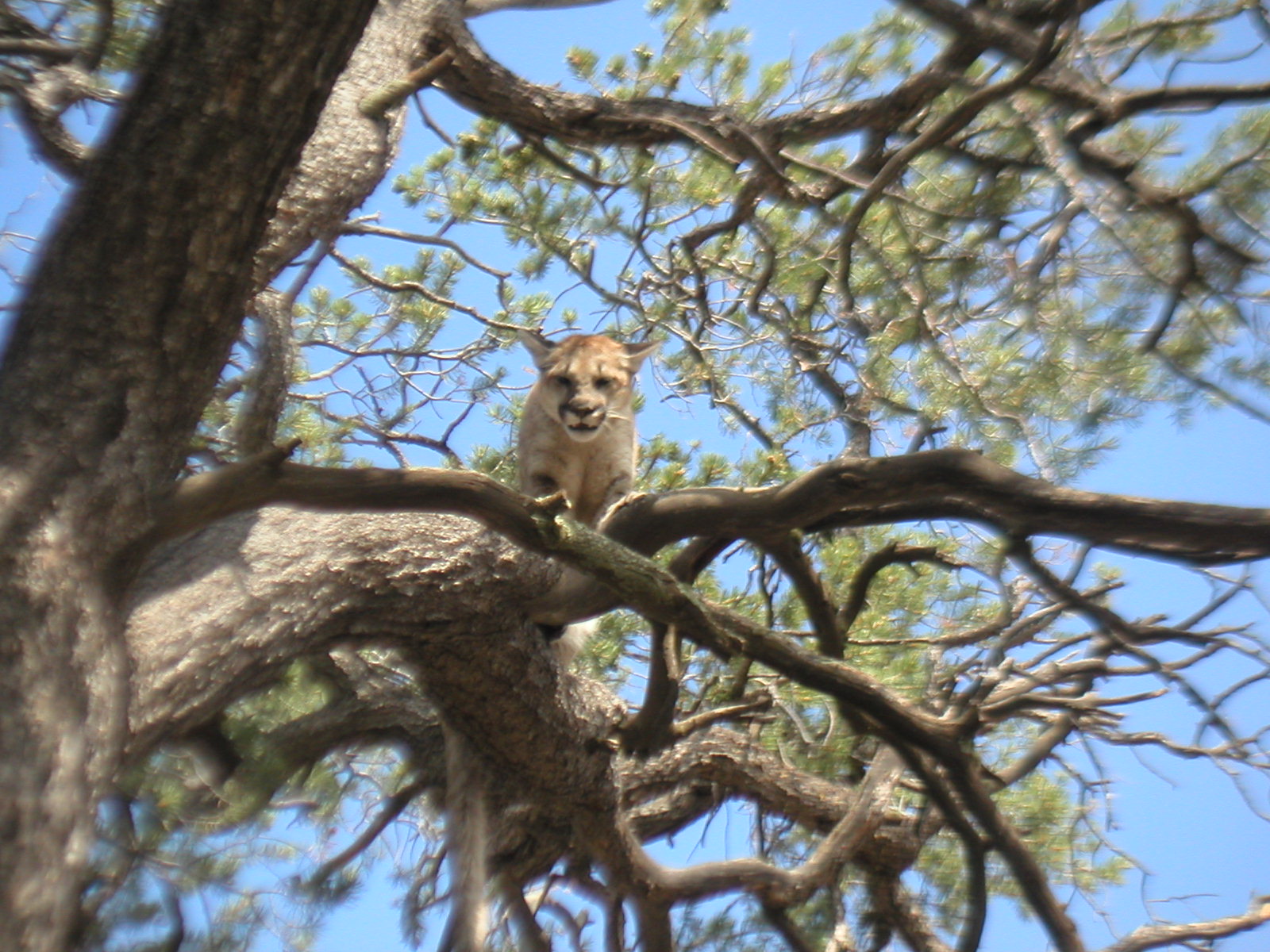 We had the good luck of hitting a track late one day. it was already in the 90's so we waited till the next morning. It was a lot cooler with some cloud cover for a couple hours. Luckily we only had to trail a couple miles and jumped two lions. This is the female. The other was a medium sized male.