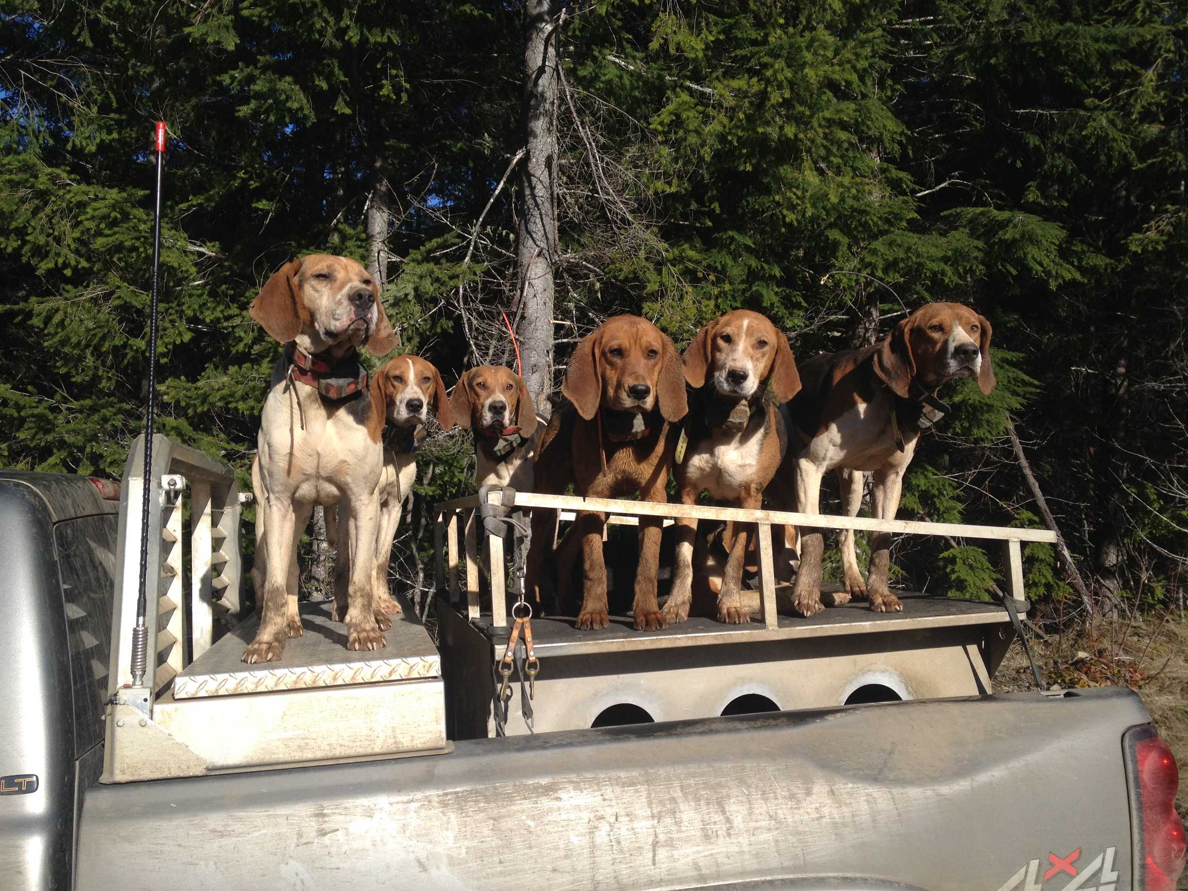 This was opening weekend 2015 ,hounds started out good . THE RED AND WHITE IS A HOUND I CALL DEWEY . Guess where he came from? He is a nice hound and puts speed on the jump!