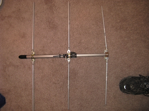 Now of course I could have just saved up and bought a Marshall antenna or some other folding yagi, but why not make one that is modeled after the Marshall antenna, optimized and tuned to my collars a little more precisely and a WHOLE LOT CHEAPER. All of the parts were scavenged or bought from Ace, all in all it cost me about $40.00.