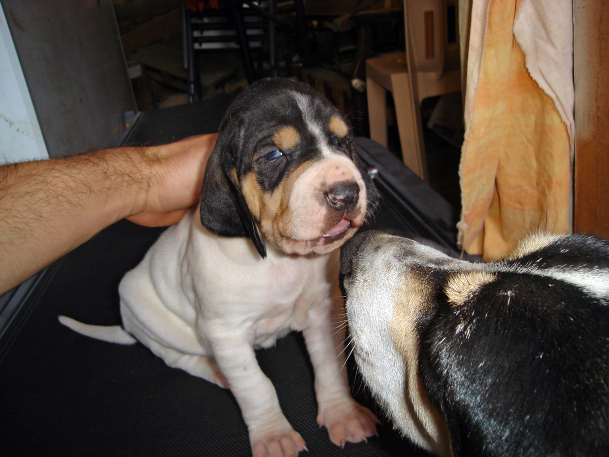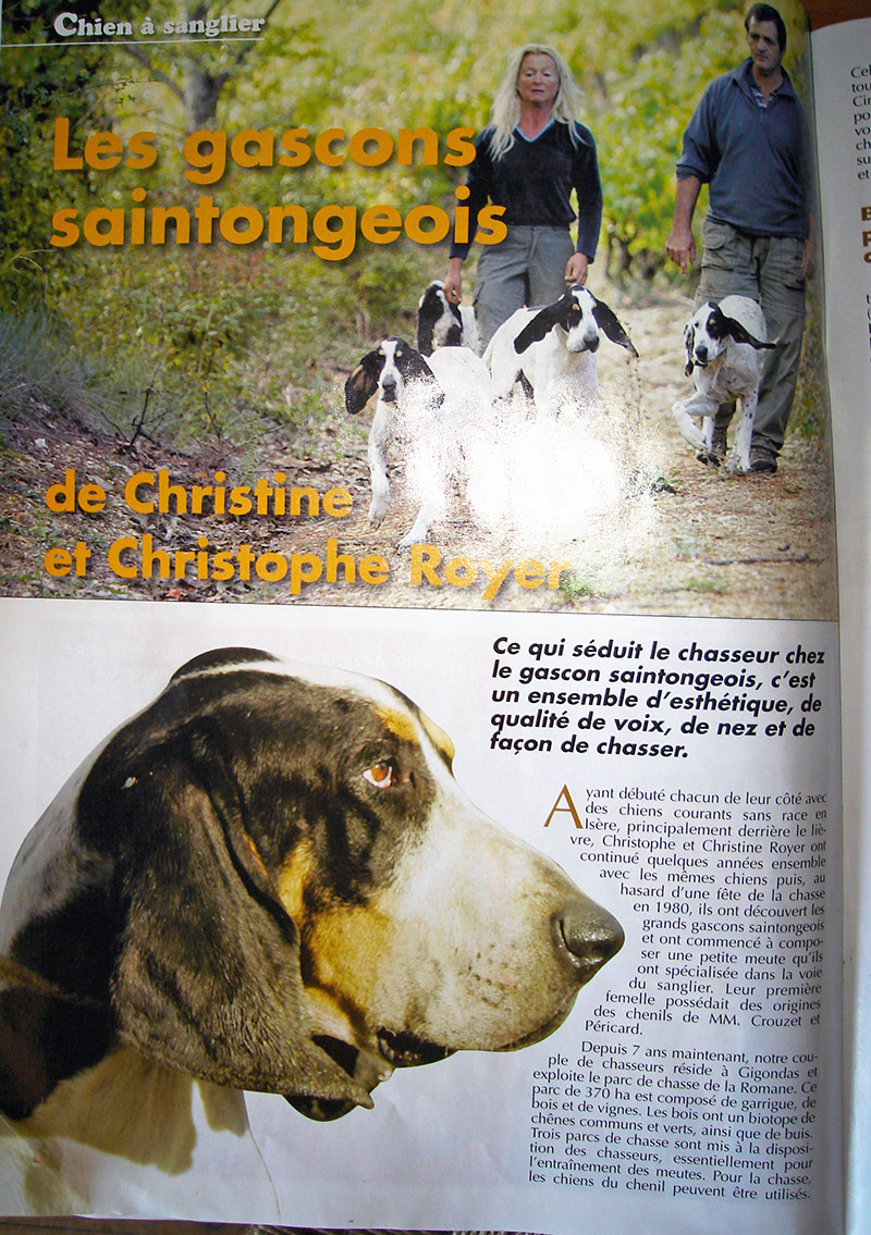 Yes I want my pups look like petit Gascon, but to hunt boar, pups's parents are very "rapprocheurs", when they hunt a cold track of boar they bark like wolf (ouuuu!!!! ouuuuu !!!). The morning we search a track of the night, and the afternoon we go with hounds, so maybe 10-15 hours track, we never hunt when it snow, we can hunt like this in summer and in winter, no problems. Here , the boar hunt is very difficult, if you haven't good hounds you can't find boar, they are very, very, very wildness, they eat only in the dark night and when the hunt come, they travel very long distance(10, 20 miles) in the night to find the more confident place. In the early saison, it's easy to find them !!!, but like every lands are hunting, this comes rapidly difficult !!! Of course, we have hounds. We love hunt boar, because in France, it's the animal that travel the more, it's the most intelligent. Unfortunately, we have no wolf to hunt, because wolf was a very difficult hunt, and we love this.