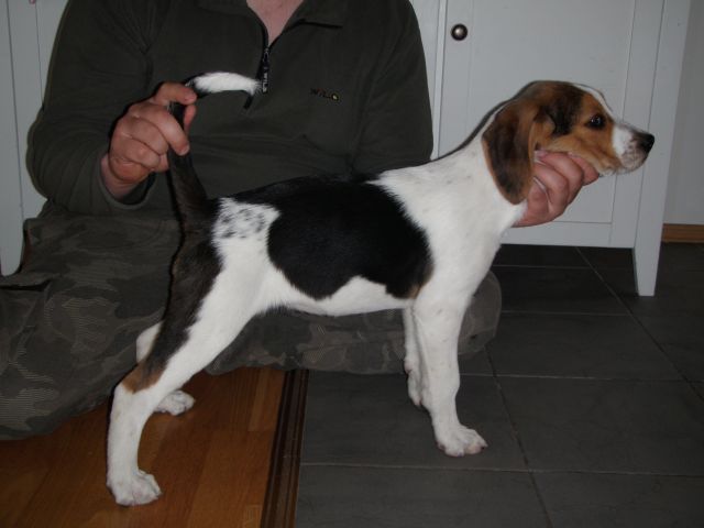 Here are a couple pics of my two 14 week old male full Triggs treeing on a scent drag. They trailed and treed two drags that day (bobcat scent and bear scent).