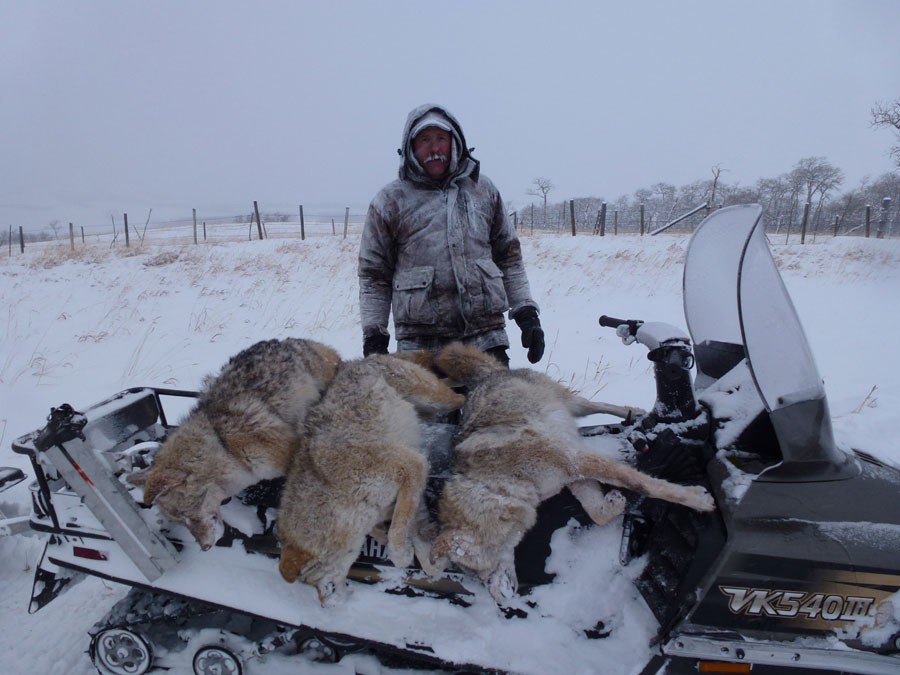 This is the drag set up on an MB 750 and a couple coyotes caught in wolf snares