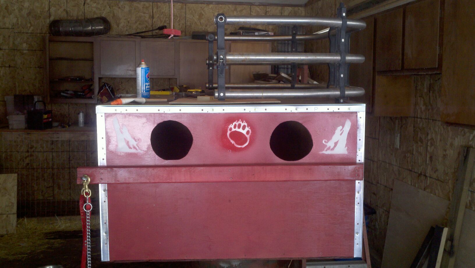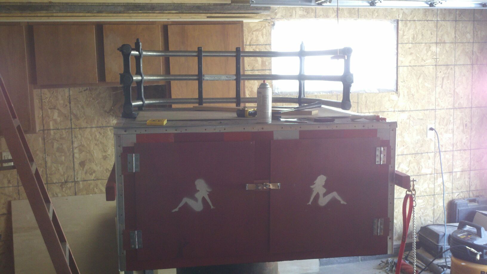 ih that's a idea!!! I doing the same. got a free box from a buddy that has bird dogs and I am thinking of welding some 3/4" square tubing into a rack and some carpet.. the hounds look good in it already..