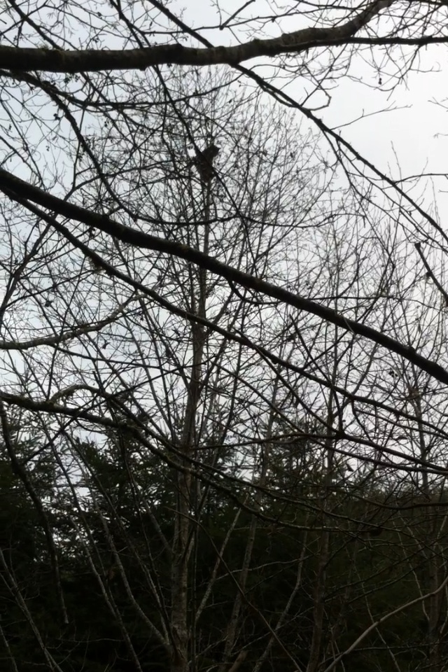 He's not liking what's below him I took this pic through a pair of Nikon monarchs 10/42 hes over a hundred and fifty yards away I was siting in my truck looking out my window what a good day it was to be in the woods