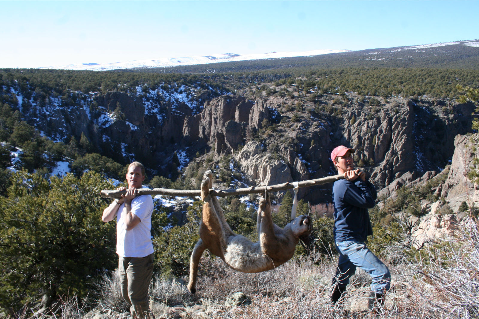 I had two guys come in from austailia hunting cats we started hunting on the 17th and ended the 25th we were lucky to get one the first day and from there the conditions went to crap. so I started hiking down big nasty canyons everyday until we caught another here are a couple pics. I will post more pics.