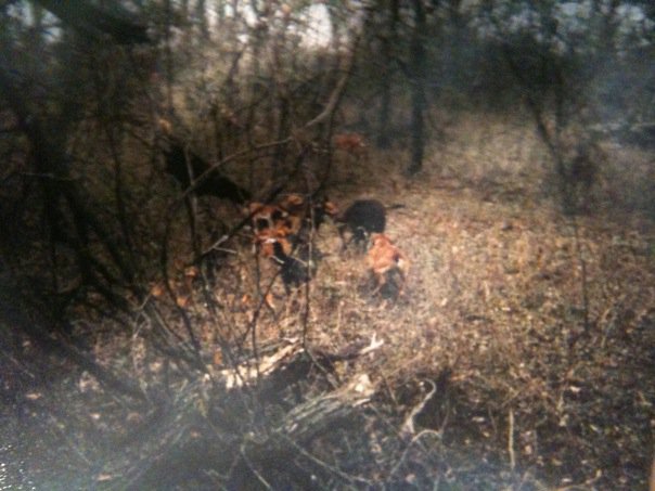 some more photos of my Walker Bitch bayed up with other dogs the one photo the hog is breaking she is rite behind the hog.
