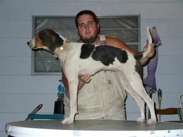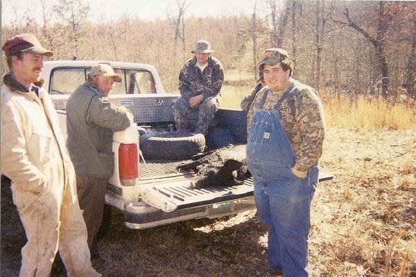 The plot in the pics is my Belle female. Belle is out of a dog that was run at stud in the American Cooner and Coon Hound Bloodlines for several years; Grand Nite Ch. Lock Tite Amos. Amos may or may not still be alive idk he was owned by Wade Mann of Philldelfia, MO, Wade is alil better known in the Coyote Hound world he has had Crogan bred coyote hounds for years but I guess he had several good Plot coon hounds to over the years he won the Missouri State coon hunt with a female out of Amos a few years ago i think he also bear hunts his dogs alil but im not sure where at. We have always cross bred our dogs LoL im kinda embarassed to say it but I have never even sent in her puppy papers. Im gona breed her next year to a full Plott he is registered but im not sure how he is bred either LoL. We have raised 2 litters out of Belle but once to a Airedale they are about 10 months old they are making excellent dogs and once to Zack's old Ridgeback dog Sampson they are just little fellars still. The Plot dog Im gona breed her to is out of Denny Jenkins' Tracker dog I think he is out of some Oklahoma dogs and out Wayne Jenkins' Maggie bitch she came from Mississippi but like I said Im not sure how they are bred. I think Belle is supposed to be heavy Vaughn bred that is what I was told but Im not sure Im gona send her papers off next week I will be able to tell u something after I get them back. Im well versed in Treeing Walker Breeding and English dogs thats wat ive coon hunted since I was a boy but Plots are a new Language LoL. Photo of another hog from Missouri and a closeup photo of Sammie.