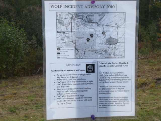 Here is the usda's answer,to wolves killing dogs in an area. Keep them on a leash, and in sight. The map is probably twenty five square miles of the most prime bear hunting in WI. And for the hunters, which own land, and have camps,for the last 50 years, the wolves have first rights to your land, and you need to hunt a different area, to keep you dogs safe, which were running out of, makes a man think about who really owns, what