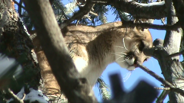 ...off we went. The track was a little blown in at that time and moving was slower than usual but, it didn't go far and treed they came. here a couple picks... bad tree but very fun hunt with some good guys. If I just had one of Big"R" falling some distance out of a slippery tree clinging for dear life