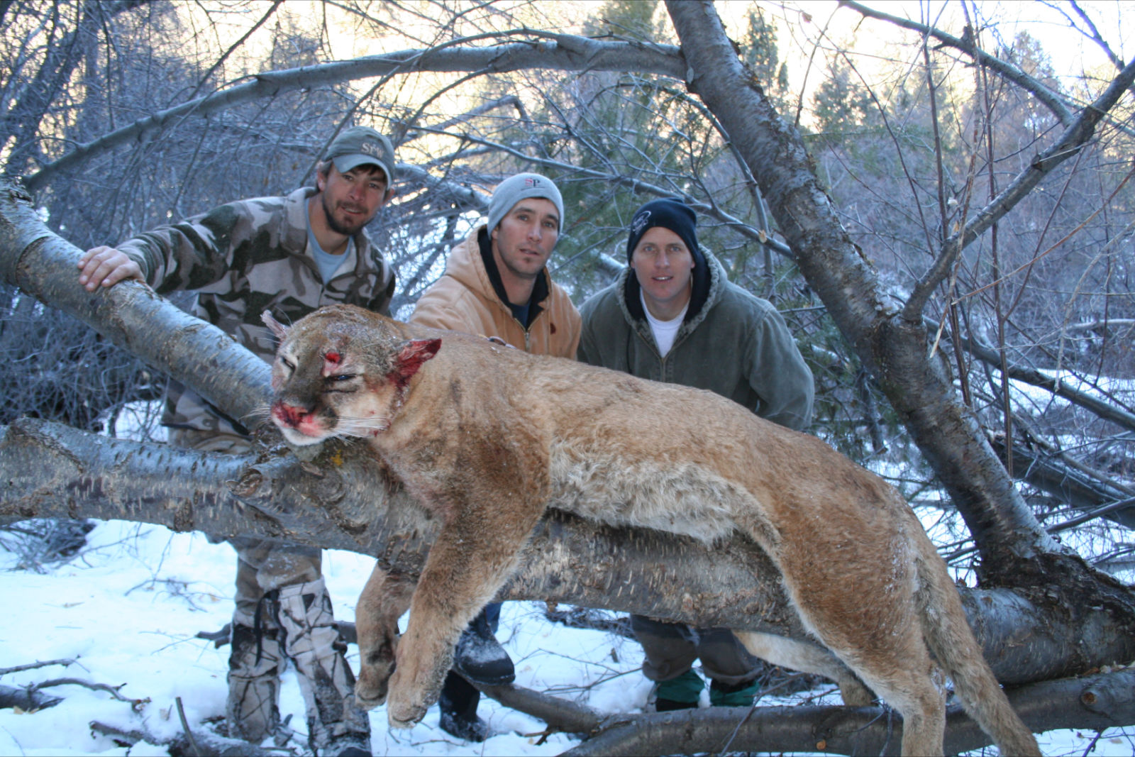 Congats on a nice hunt. Nice pics. But a few mins with a knife skinning those lions can sure make the trip back to the pickup a lot easier.
