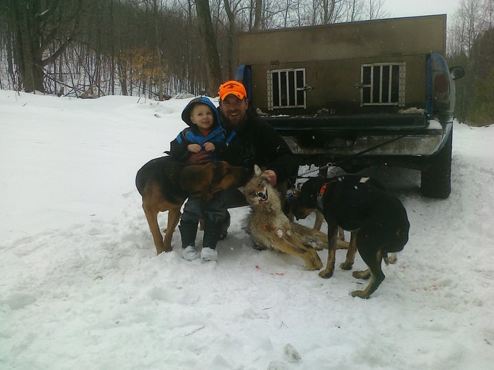 I have a bloodhound that i originally got for yotes but ended up coon hunting, rabbit hunting and mantrailing with her instead. I was afraid she might get hit by a car during a chase as we have crossed a few roads during some of our chases. Basicly she will hunt whatever i put her on. I do use her son who's a Majestic- half bloodhound, half treeing walker. He's about 100 lbs and a great jump dog and can hang in there for a couple hours.