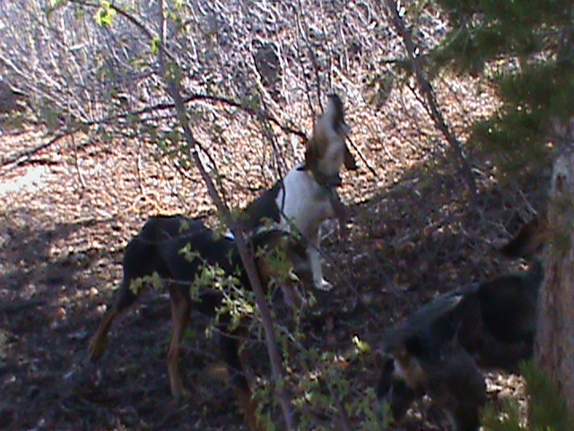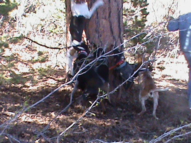 We trailed him for 6 miles in sandy clay like stuff and finally caught him up a big pine all dirt to. :D :beer