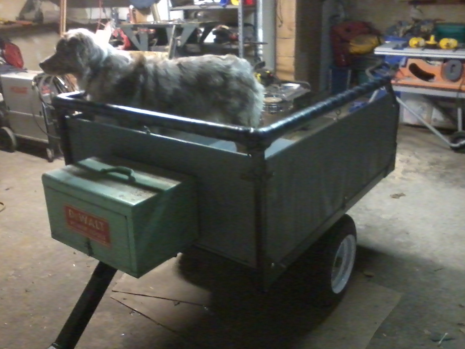 Have any of you built your own trailer for pulling your dogs behind your fourwheeler? Im in the process but am looking for ideas. Ive used some lower Aarms off an extra Toyota front end we had, some leftover steel we have stocked up and ordered a set of coilover shocks for a kids 110 fourwheeler. So far I have about $100.00 into it.
