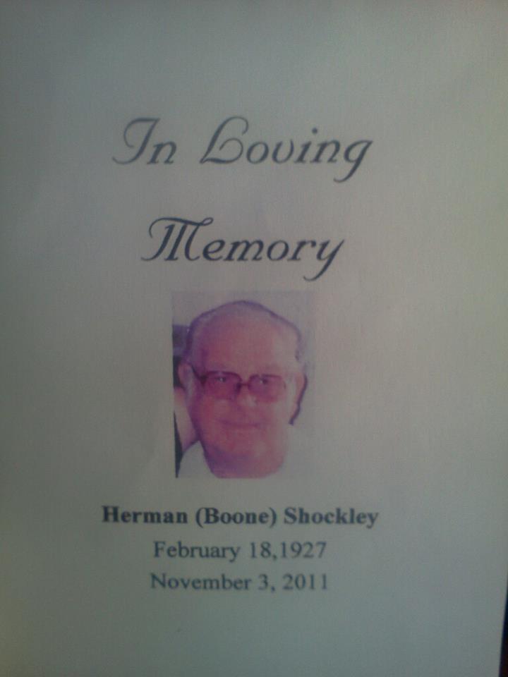 Herman (Boone) Shockley, born Feb. 18, 1927, died Nov. 3, 2011.