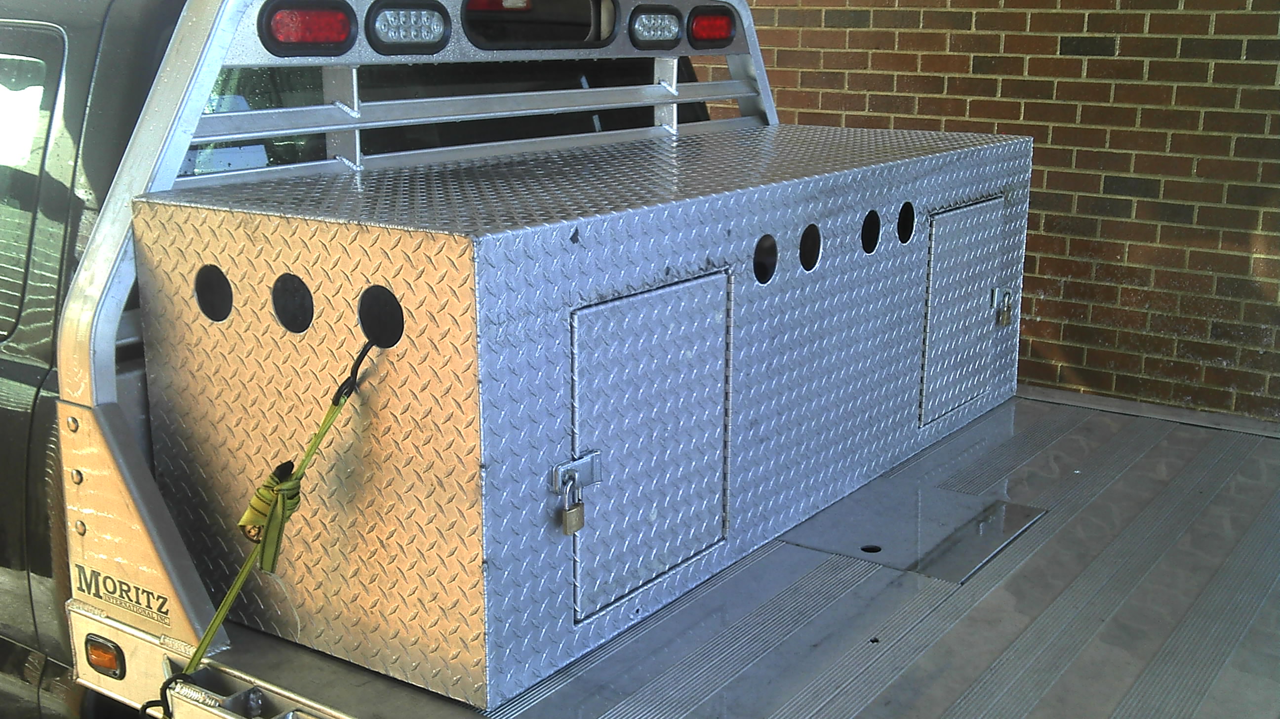ImageThis box I made will hold 24 dogs 12 per side plenty of storage on top plus a full size bed roll on a short bed dodge