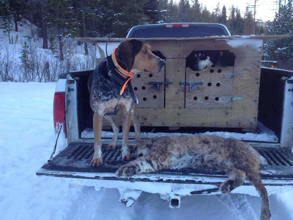 I believe people worry to much about ruining there precious bobcat dogs. The attached picture is 5 year old June and I run her on bobcats, lions, bears, and field trials. I believe if you have a good solid bobcat dog you won't ruin them by running other game. She excels on bobcat and I would be willing to bet money on her against any bobcat dog out there. I believe its more important to keep your bobcat dogs in shape rather then just reserve them for bobcat hunting several months out of the year.