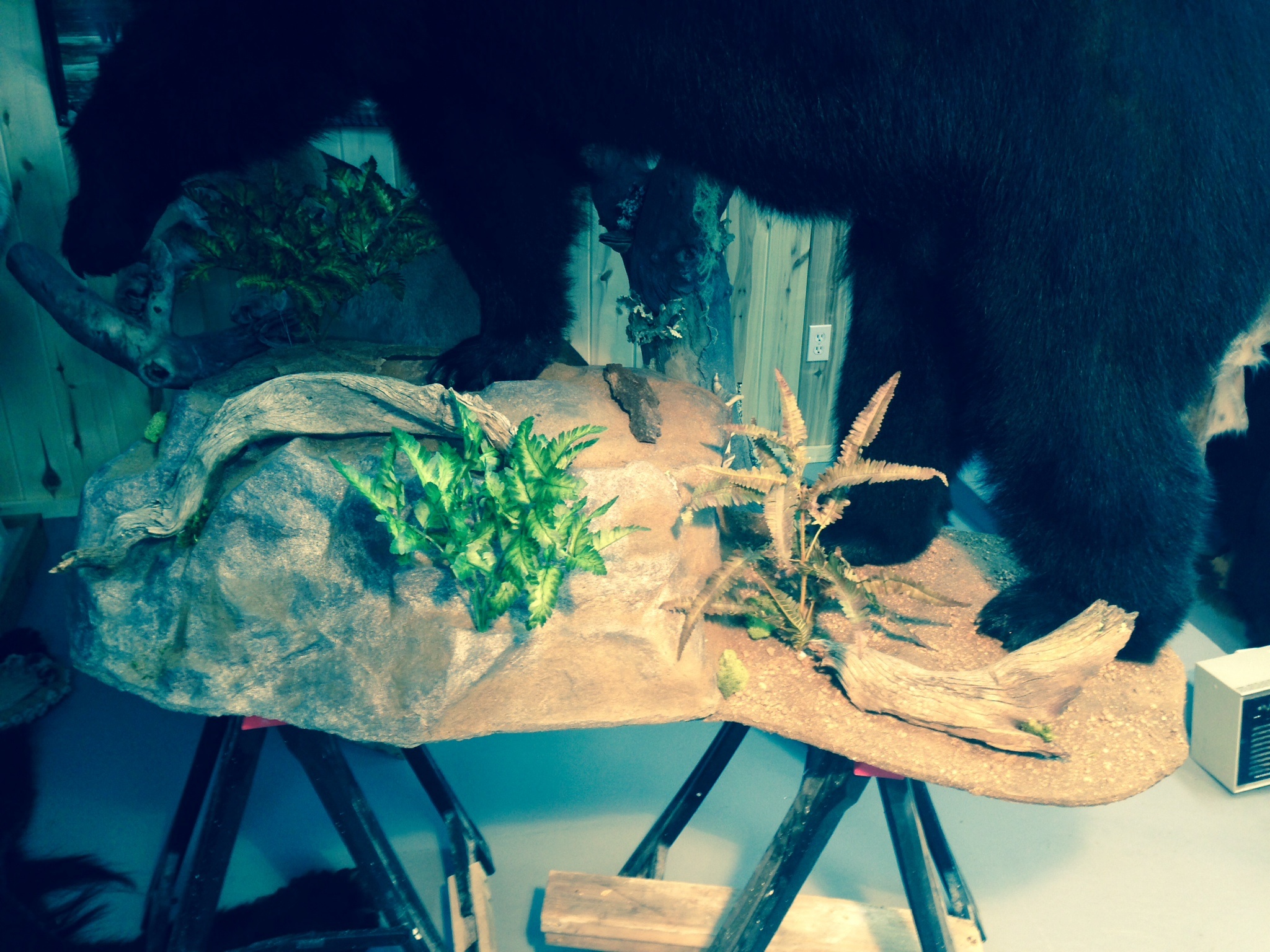 Another day to finish the wood area of the base, set the plants, moss, etc. and this bear will be ready for pickup.