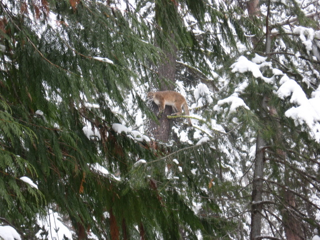 His last tree, I turned him on a nasty track on the afternoon of Dec. 31st. Sometime after midnight he finally treed a sow 800 yards off the road. I got to the tree at 2:30 AM. He probably treed the first cougar that got treed anywhere in 2014.