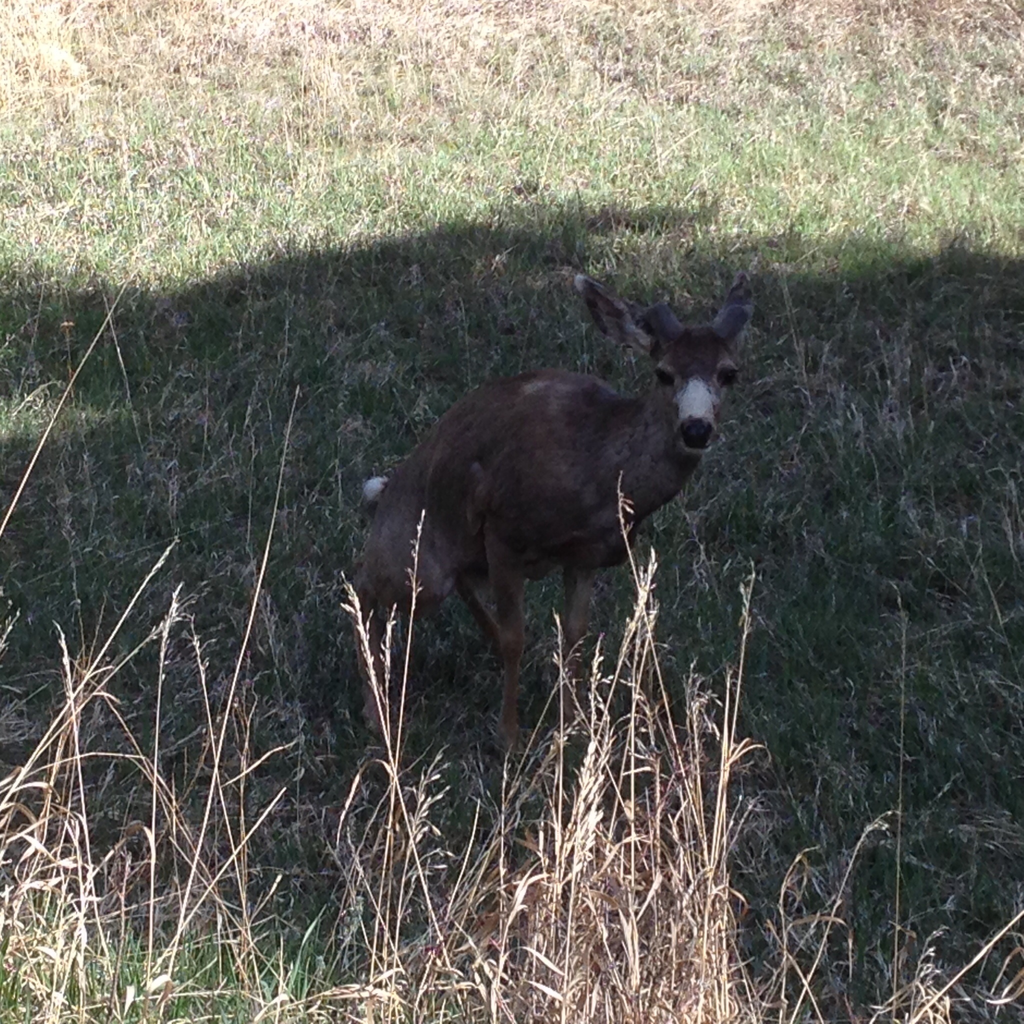 Here's a pic I took in my front yard yesterday. These four bucks hung out at my place all last year. They were all in the 150-160 range and somehow survived through hunting season. They should be nice bucks this year. I'm going to try and get pics of them all summer to show their antler growth. This is Curly. He has something wrong with his tail, it looks like a pigs curly tail.