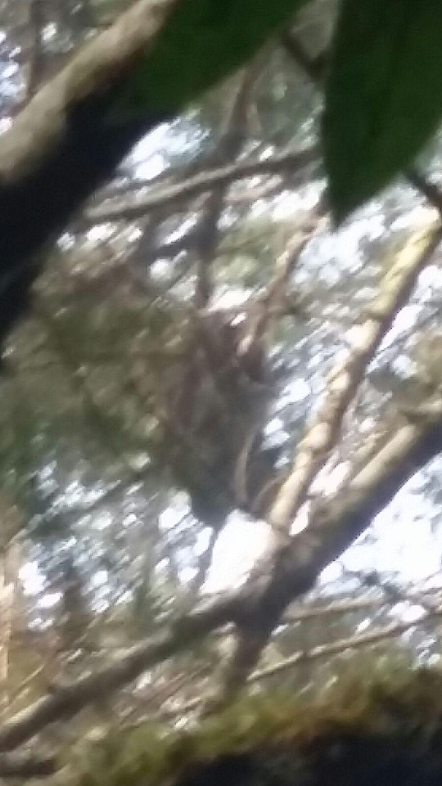 Jc had me turn out on a crossing and Rogue hit a cold track almost immediately.He dinked with it around the road and headed out a road we couldn't get through on .I decided to take a big risk and look for a better track .It paid off as he struck again on the next side road we went out.He trailed off the end of the road and in a couple of minutes came back jumped and running .The cat headed down the mountain ,crossed a creek and treed .I couldn't get a good picture on my phone but i think JC did .