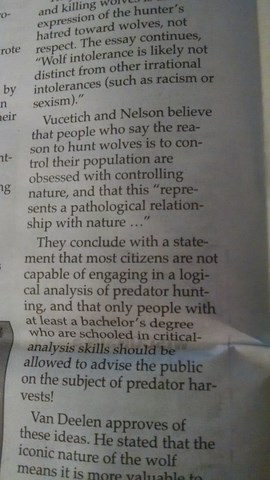 Wow. Yea us dumb rednecks from MT have no idea about wolf management. We had them eradicated once and then got them shoved back down our throats because the "educated" people thought it was best!