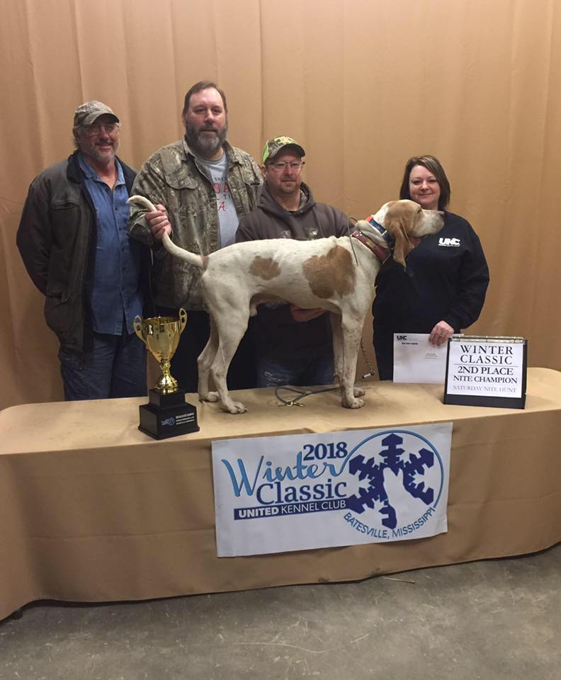 Once granded Ashes will be able to produce a All Grand litter, as you can see she goes back to the original Light Foot dogs owned by Bill Clark and in the bottom side goes back to World Champion Big River Jesse. Here pedigree will consist of three World Champions.
