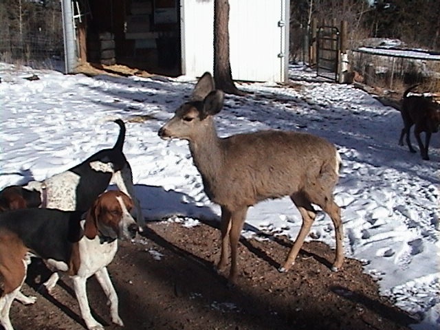 Had deer dogs when I was a kid that played with our pet deer. They would lay in the yard together and chase each other. It's a sight watching a deer chase about 4 dogs. Lol