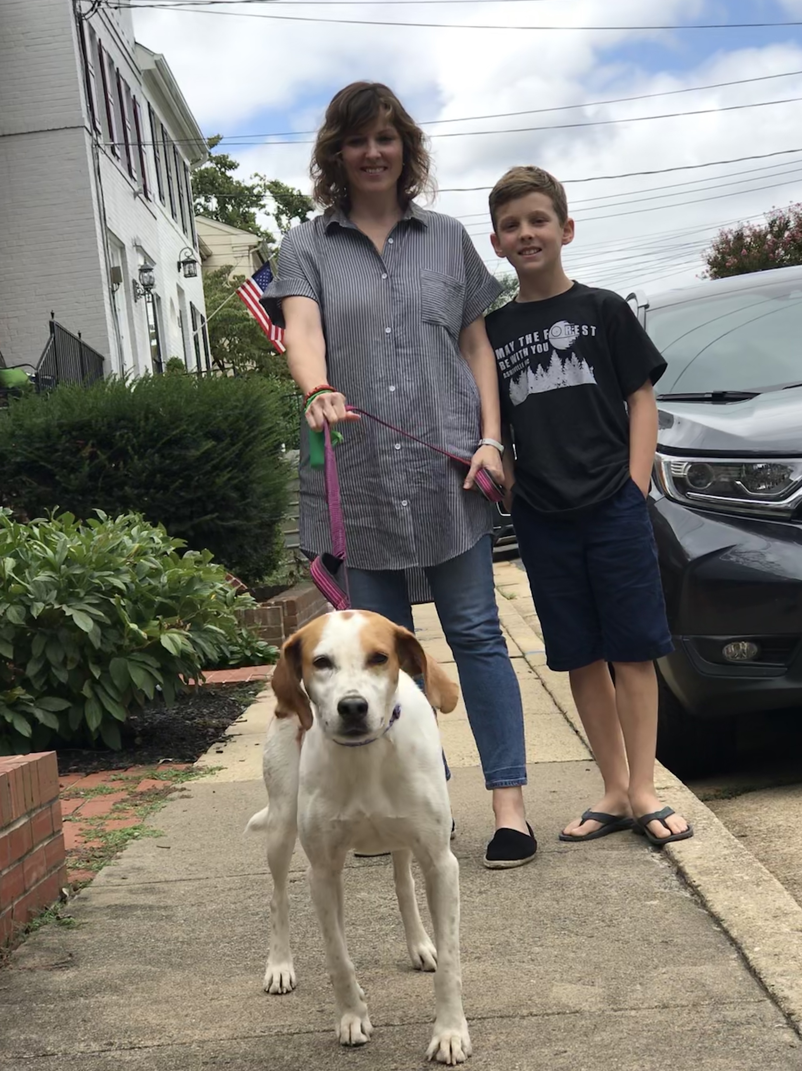 I sort of agree that there’s a fair bit of Foxhound in her, but I don’t think she’s pure. She actually did bark today, for the first time, when it was time for dinner. I’m not super familiar with how different breeds should sound, so hearing her bark didn’t help identify her breed. So far the most aggressive she’s been on a leash is when she sees a squirrel. We live next to a giant park along the Potomac with deer, raccoon, fox, beaver and lots of squirrels. We haven’t seen anything but squirrels on our walks, but man she gets after it when she does see one. No sound - no howl, no bark - but she takes off running and it’s a fair bit of effort to get her to calm down and regain her focus on me. But that’s just who she is, I guess. I plan to start jogging with her next week - so far we’ve mostly walked about 4-5 miles a day - and we’ll just go from there. She remains incredibly sweet and docile in our home and, if we don’t see a squirrel, responsive and obedient on the leash. We feel lucky to have her and she seems to be liking her new home. Fingers crossed!