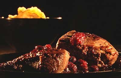 Finally add some blackberries, currants or blueberries and poach them in the jus to make a lovely black sauce.