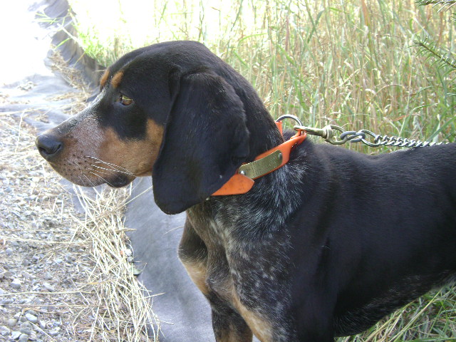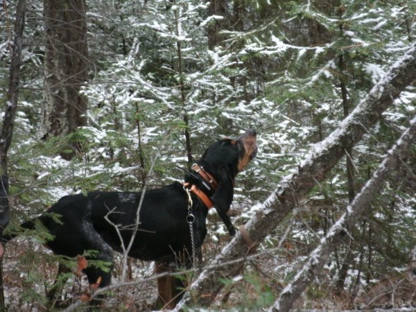 He is 8 months old now. Handles like dream, never have to put a lead on him but if you do he won't take the slack out of it. Has ran and treed a couple bobcats and been on several coons. For his age he is doing awsome. Trying to make him a coon dog but he sure does like them cats. lol