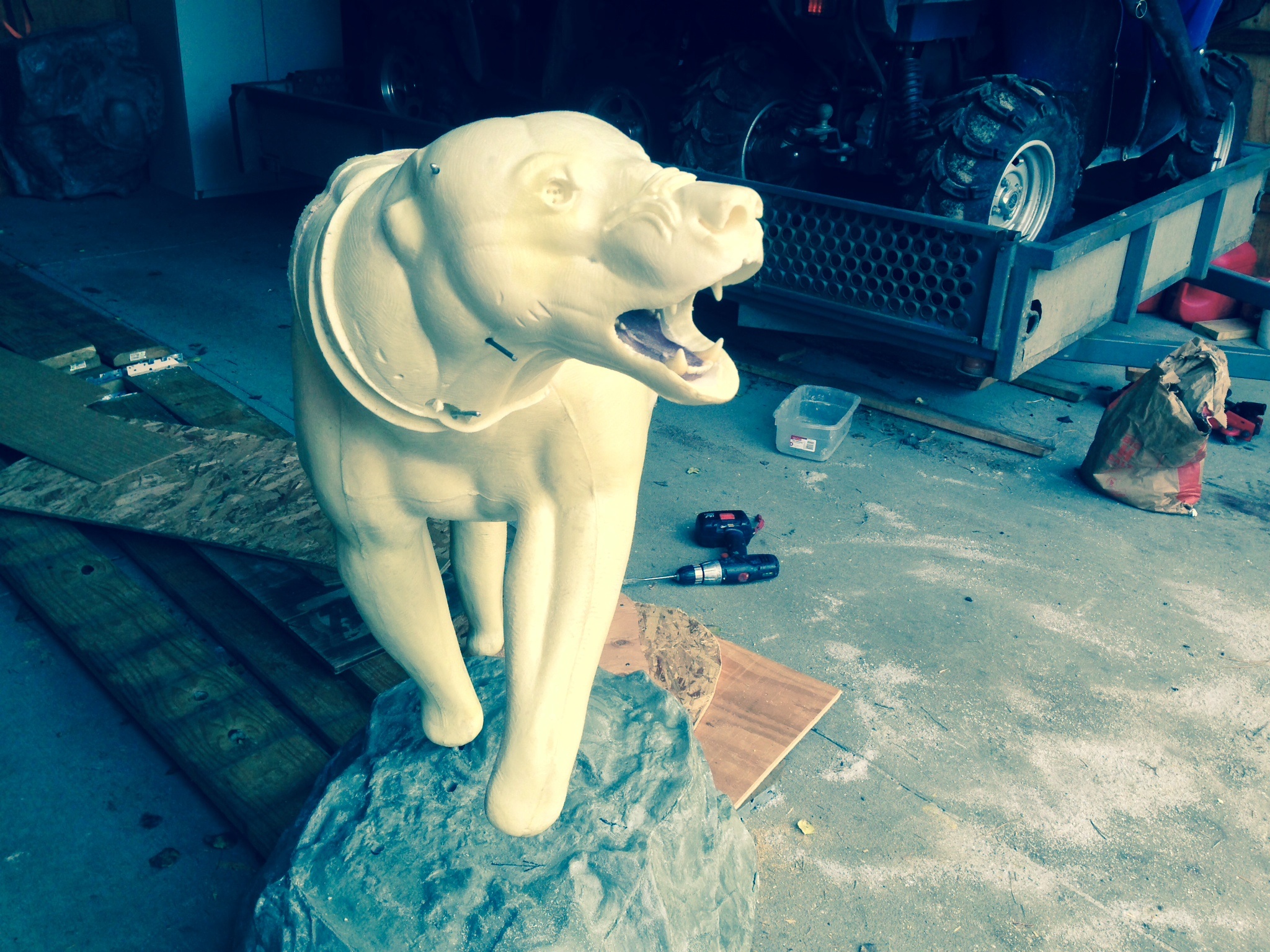 After a week or so, I can remove the bear from the base and start on the finish work to the rock and the rest of the base. The last thing I will do is the finish work to the mount. This will be puttying around the eyes, inside the mouth and in and around the nose as needed. Then all the painting. Its been a thirteen hour day, I,m whooped. See you in about ten days.