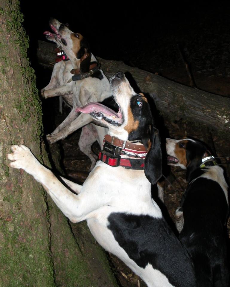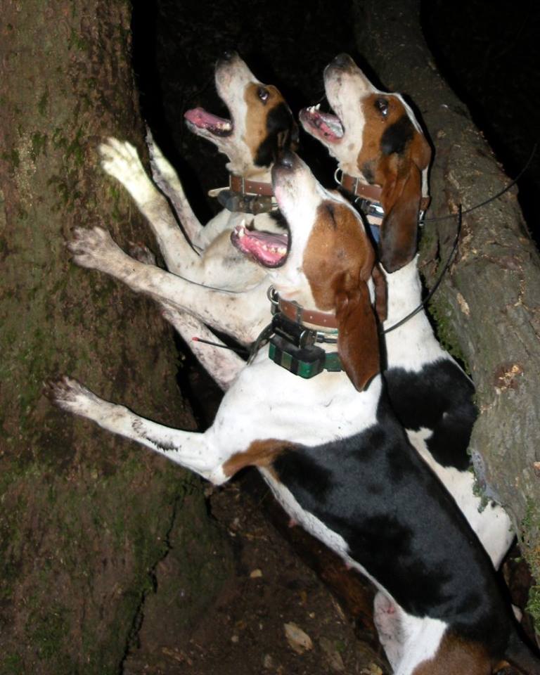 I think they might be male and female as they are calling a lot at night right now and its pre-breeding season. We ran fox from that area several times before treeing the two together. Had some split races and trees so I figure it was the same pair...