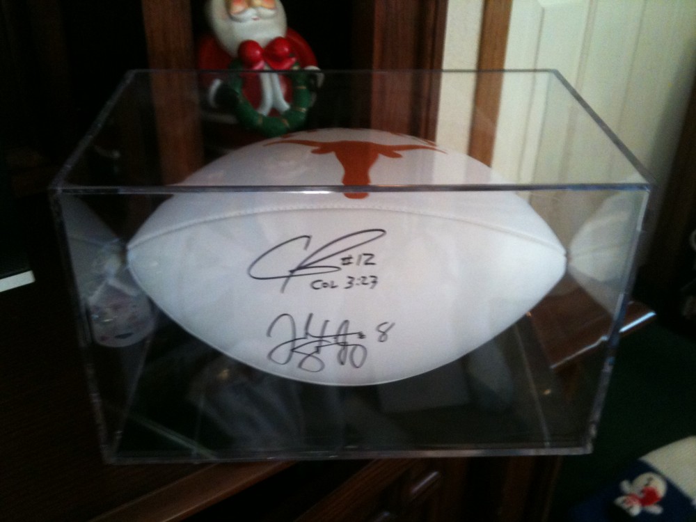 I work in Fort Worth so I'm screaming TCU!!!! My son is a huge UT fan and I was able to get him a ball signed by Colt McCoy and Jordan Shipley for Christmas. Didn't mean to change to subject but it was pretty cool for him.
