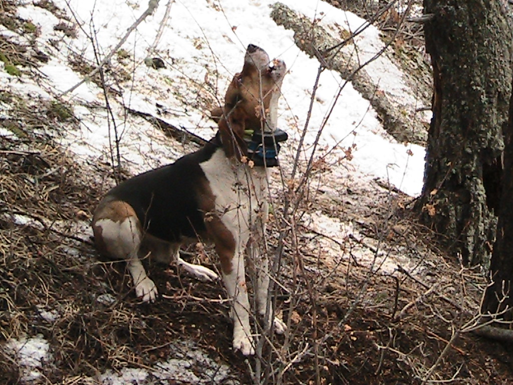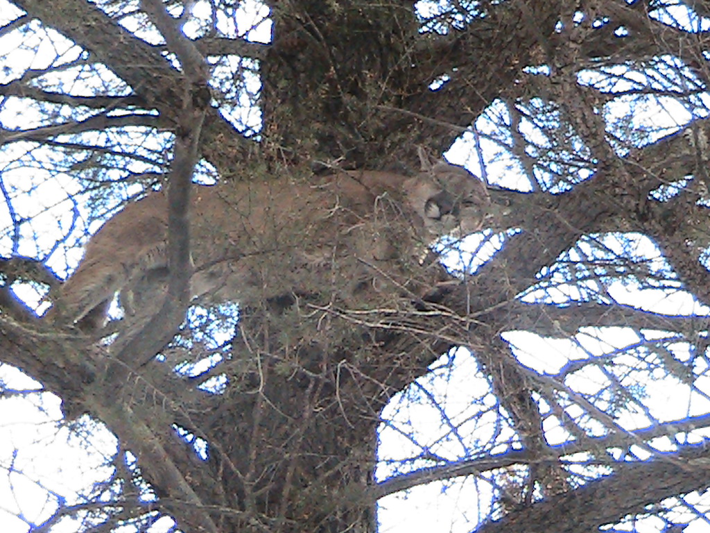 I caught a nice tom today in very poor conditions. We havent had any good snow in a long time so I hiked into an area that has a good cat population hoping and praying that we might find one. The dogs did awsome on almost entirely dry ground. There is still some snow on the north slopes but burned off for the most part. I took some pictures and left him to tree another day.