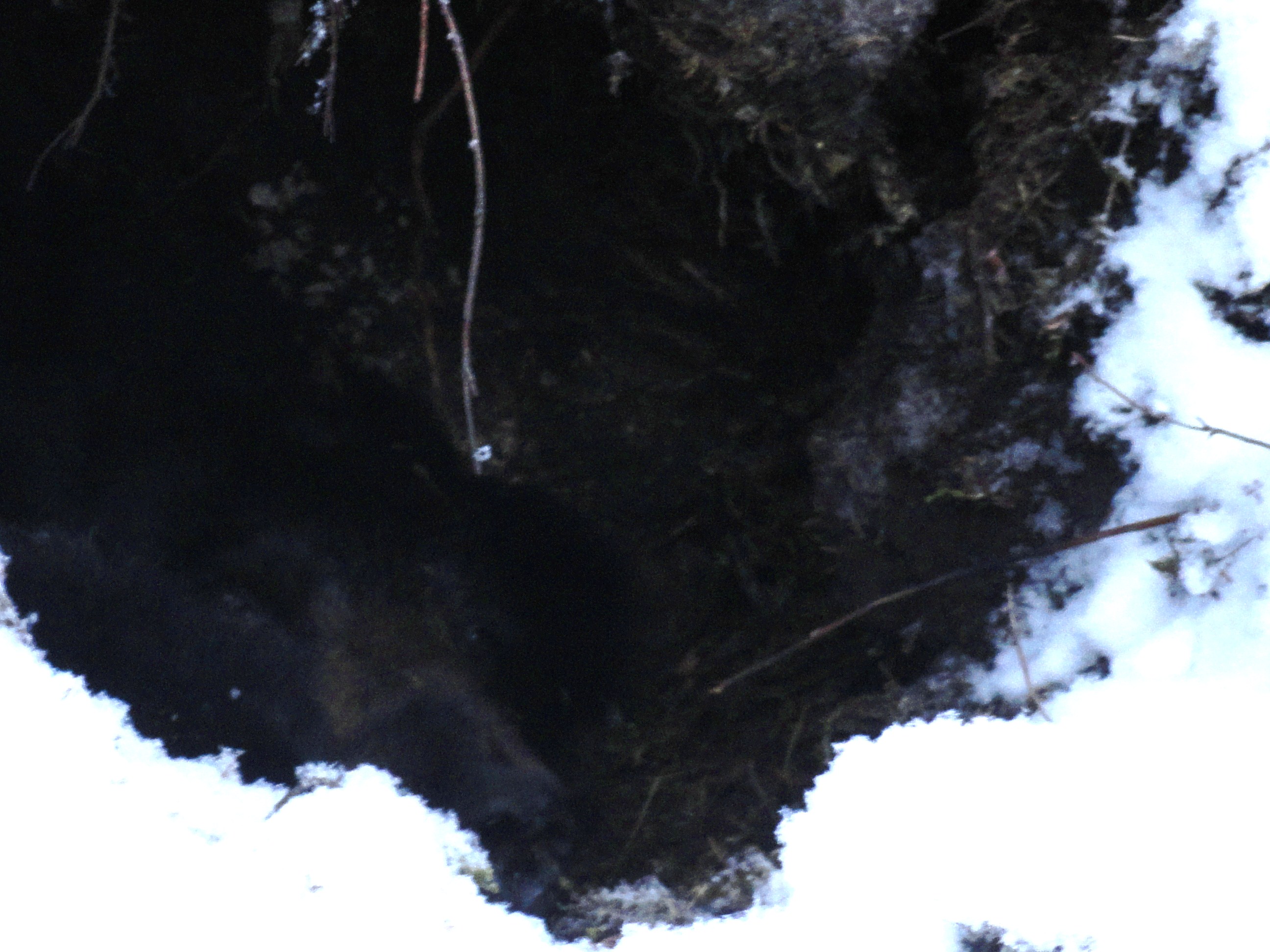 Here are a couple of pics of the bears looking out from the den, I need a good dog for sniffing out these dens and letting me know they found something.