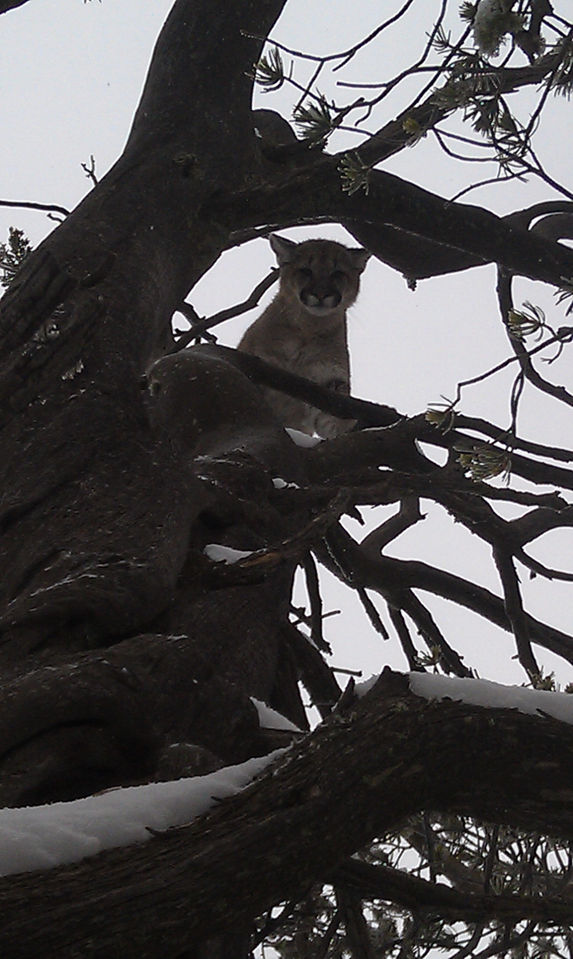 Well our season here in new Mexico is coming to a end we have had a bad snow season all year or not as much as we are use to but some how managed to catch 15 lions with the help of my brother of course.well this weekend was calling for snow just didn't know how much .we were not counting on much being that evertime the weather man said it was going to snow it wouldn't snow the weekend before this weekend we even had to make a hunting trip to Utah with our good friend jared where we had a awsem weekend getting into cats everywhere we went .so on Tuesday I get a call from a friend from north Carolina saying they were in Wyoming hunting lions which they had never done them selves or thair dogs so I checked on them all weekend with no luck on catching or finding lions so I heard that we might get snow so I invited them to come out so they made a 9 hour drive out to new Mexico getting to new Mexico around 10 Thursday night . We left my place around 3 Friday morning in search of snow and lions so we got to our destination around 5 after driving all day in a blizzard and lil sleep it was s long day and not cutting any tracks made it even longer hopeing Saturday would be the day we could get on a cat well we get up bright and early and cut roads finally I see a track and the race is on I drooped 4 of my best and off they go well the track was covered in and dogs still took it really well the dogs were about 2 miles away according to gps and they fall treed .well while getting to the tree I smell a skunk and yrs they were not treed they were finishing what was left of the skunk so I pull the stinky dogs off and line them out again and the race was on again like a mile down they break a herd of wild pigs let me say that if thair was anything that could go wrong did .so we finally gather dogs back up and a god friend Daniel comes to give us a hand well back into the woods we go finding the track once again this time we turn 6 dogs lose and they haul ass like they were on the cats ass no they were chafing eachother after yelling and shocking dogs I get my 2 year old houndenm blue tic back and line him out again well he had hurt fillings from me shocking him a time or 2 well that changed real quick once he lined the track out and in about 20 min we would be liking at a lib in a tree .finally the dogs started Treeing after hearing my blue dog Treeing . All and all it was a good day my friends from north Carolina got to see a lion in a tree and made me thankfull for my shock collars special thanks to the guys that gave me a hand on this hunt Daniel ,Roy,Travis,and,Joe hope it was as much fun for u guys as it was for me until the next chace