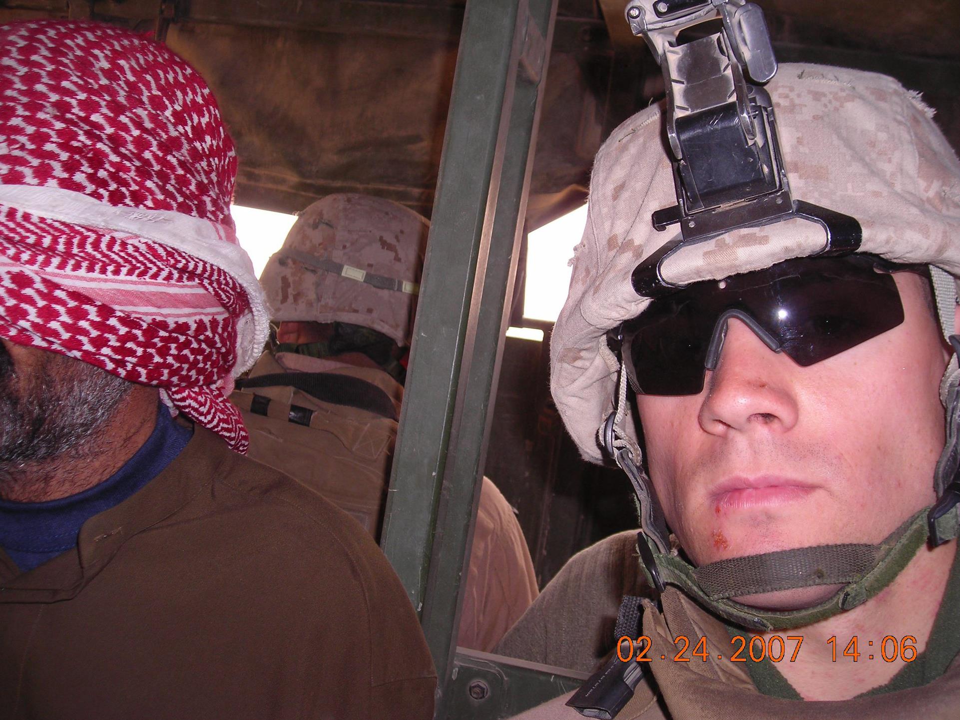 Now that I and Doug have had some field and lodge time with our Marine, I want to share some history. Justin was in the Al Anbar Province close to the syrian border and had taken an IED in his military vehicle and survided a horrific explosion on December 29 Th.That explosion almost claimed his life. He was hospitalized for about three months with wounds from the explosion and once he was released, Corporal Hall was hobbling around on crutches and talked his commanding officer into allowing him to go out on patrol around the first of March. This first trip out on patrol after the close encounter with death proved to be something out of a horror movie!