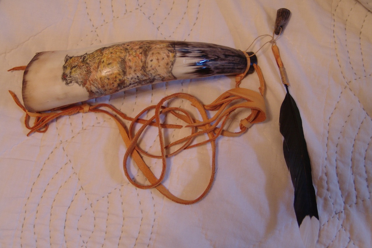 Don Stuckey ("come hunt" on BGH) made it for me. He not only selected a beautiful horn for me but did a magnificent job personalizing it with my name and the bobcat. Don is not only a craftsman, he is quite an artist. Thanks Don! If you like this horn be sure to tell Don.