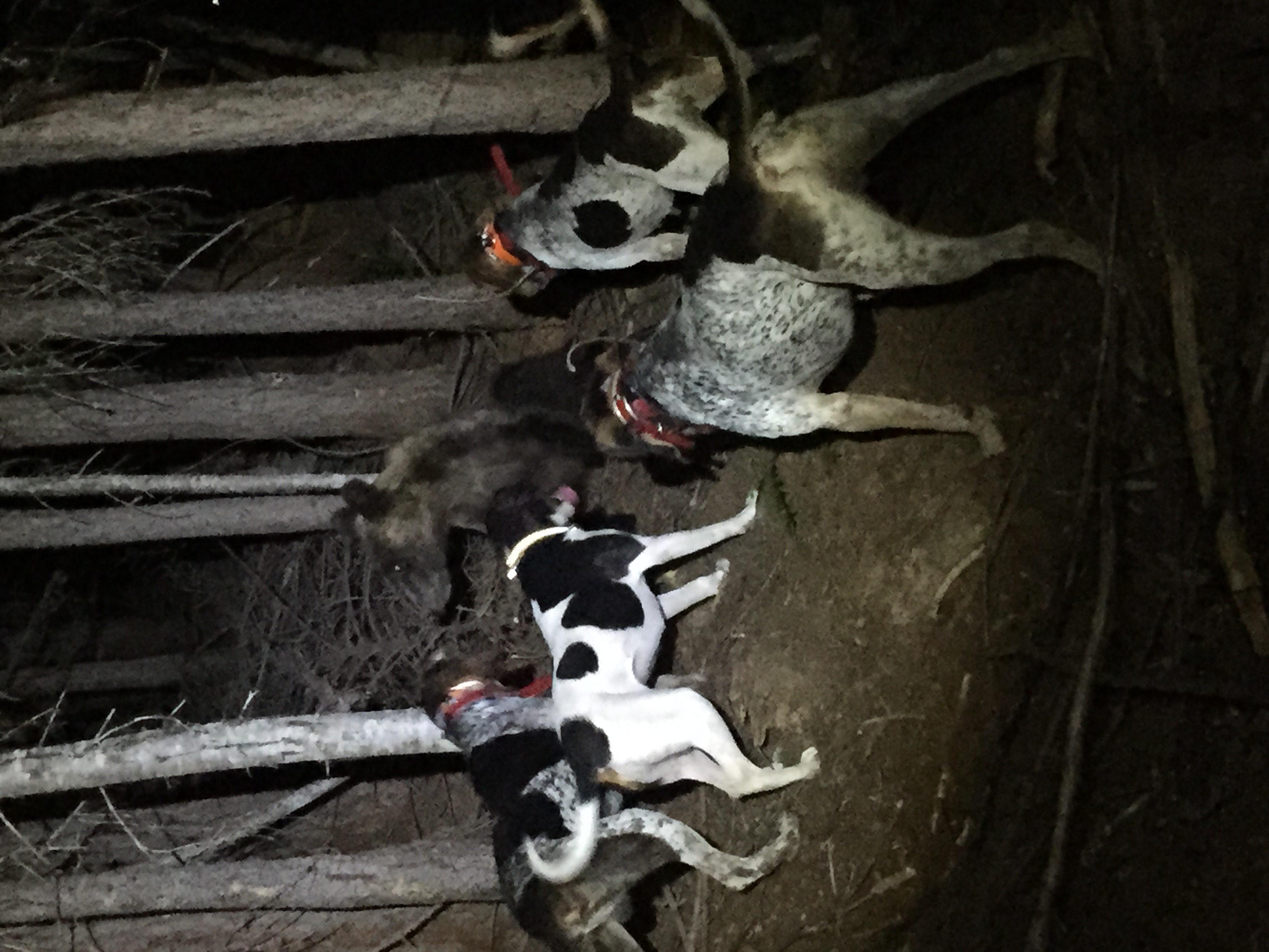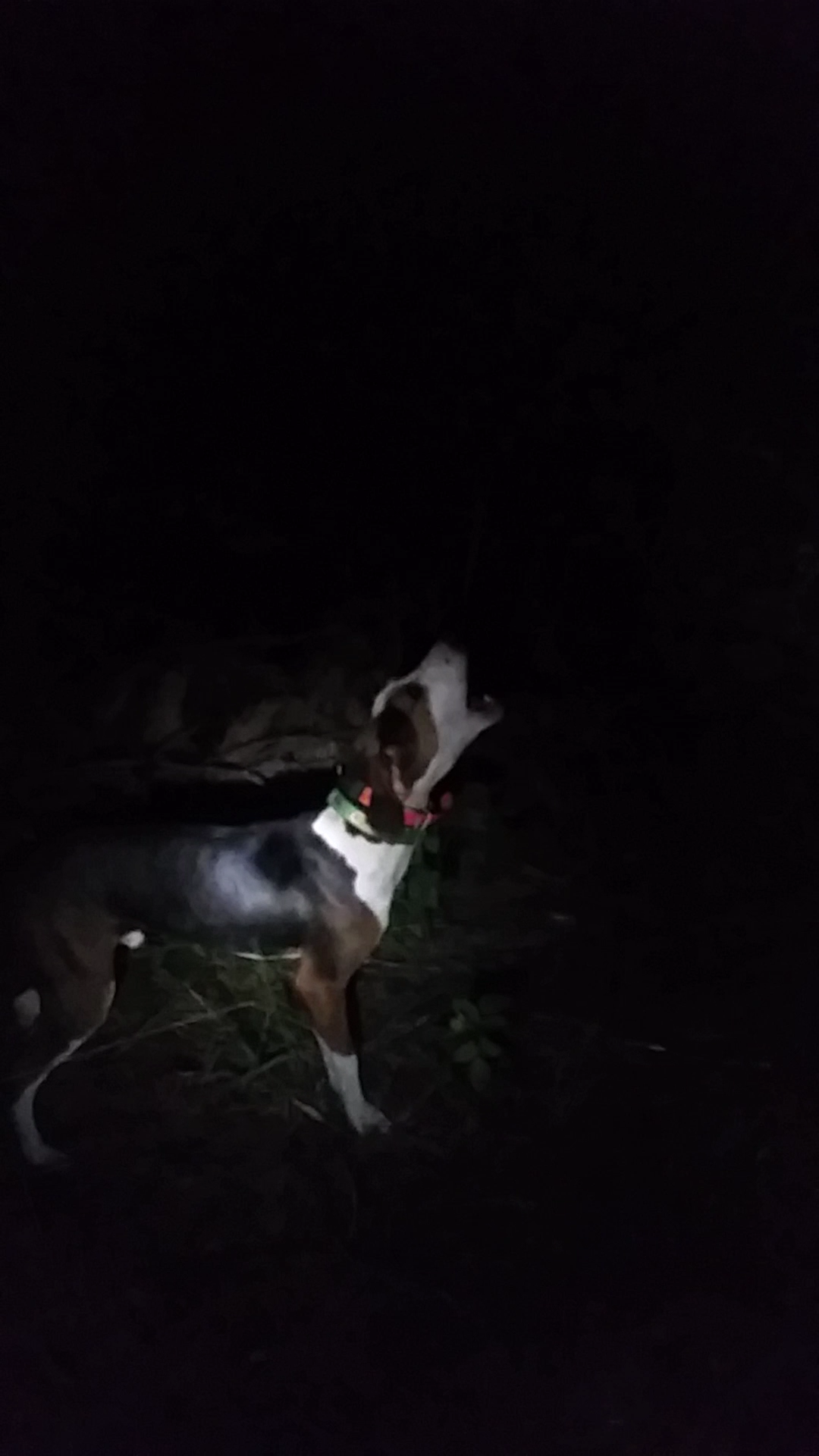 I'm currently hunting two finished hounds and a young pup bred locally here on the West Coast. He is a typical young hound. I like him because he goes well with the two older hounds and he's just interested in a live track and I like that in my young hounds. Time will tell if he has it or not. I don't own any full hounds, mine are Treeing Walker-Trigg-Running Walker x Bluetick. When you get to a certain age, breed or color don't much matter! You feel good about being fortunate enough to make it to another tree and another season! Every time I turn around another legend in the game has passed away.....Never take what you have for granted.... Life is short, hunt hard while you still can!