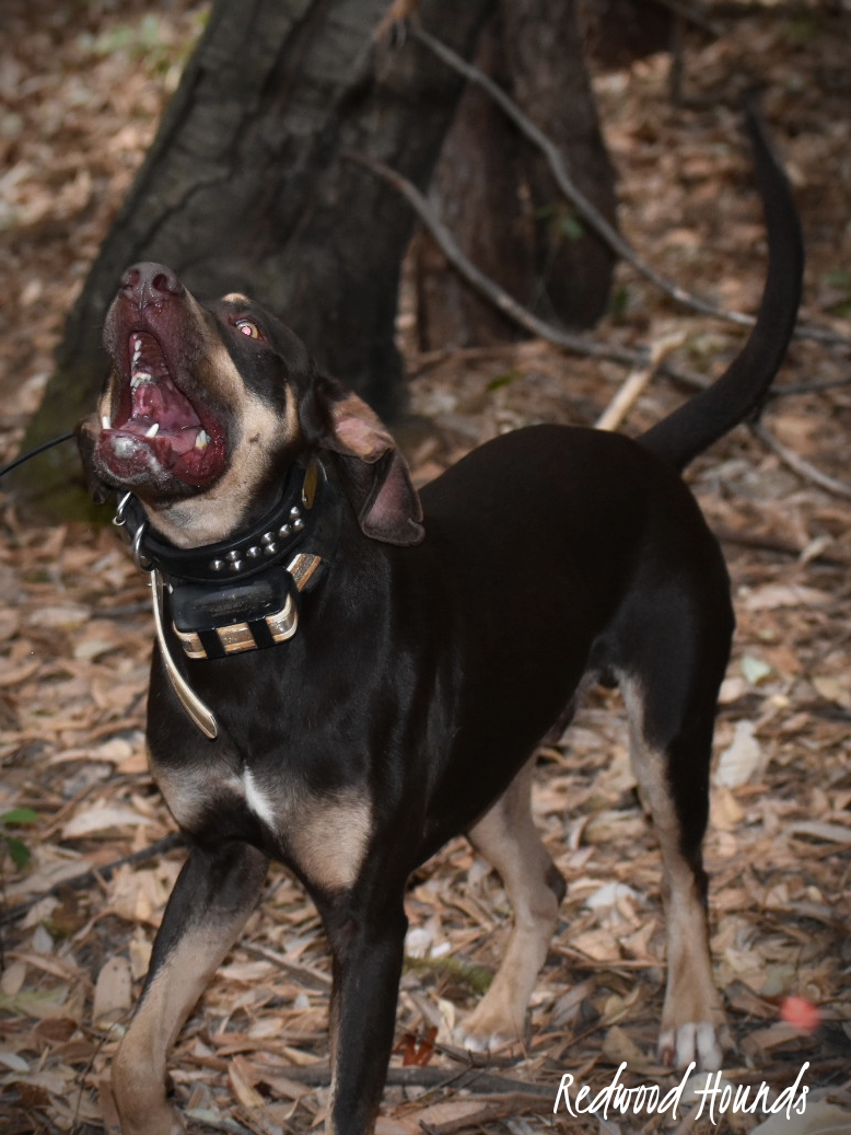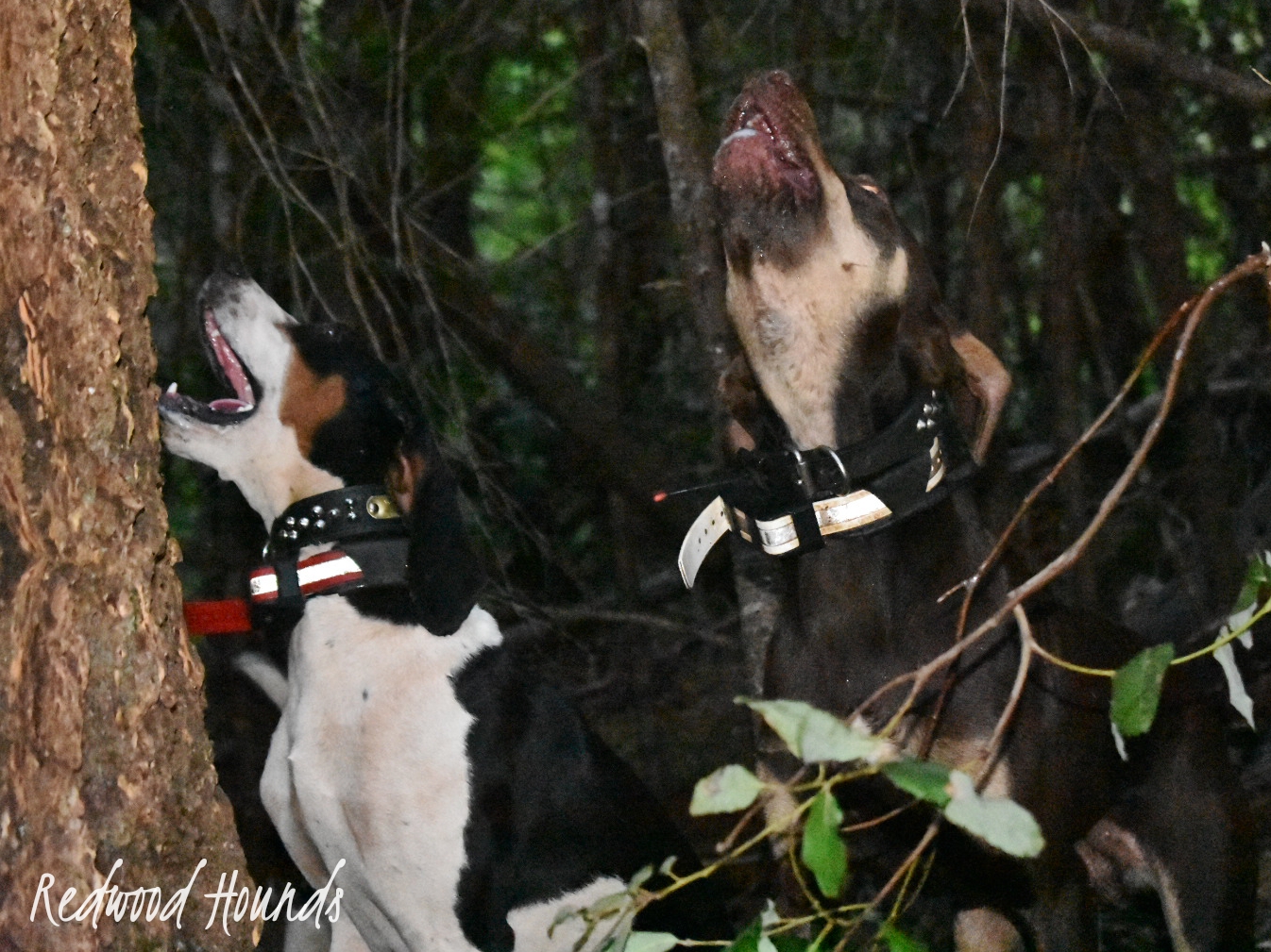 Here is a picture of the dogs coming out from a tree. Long race and it jumped tree a few times. Both of them have zero dog aggression. This is my male. He gets along with my other intact males and small puppies. I've heard a lot about curs being dog aggressive or overly gritty. Not the case with my two. I think if raised with hounds, they think they are hounds.