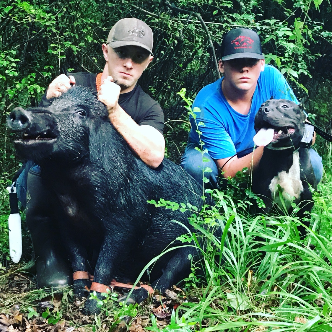 This was a hunt that we had on one of the hottest days we have had this year so far. Got up early beat the heat and got the game caught. Dropped 2 of my young dogs that morning bayed first creek hog in bed, caught him, dogs relayed came across a field my cousins dumped some of my pups on second hog with my old dogs. Hog was caught like a half a mile later. All I had was my puppy bulldog at the moment, so we didn’t wait. We headed into the bay. Sent him from 60 yards, he had only seen 2 hogs before this. He went and got the job done like he had done it hundreds of times. A hunt I will never forget and the future is looking bright for Pearl River Plotts!